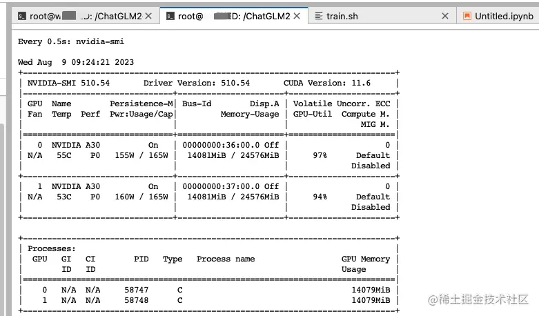 训练时显存占用和GPU利用率情况。