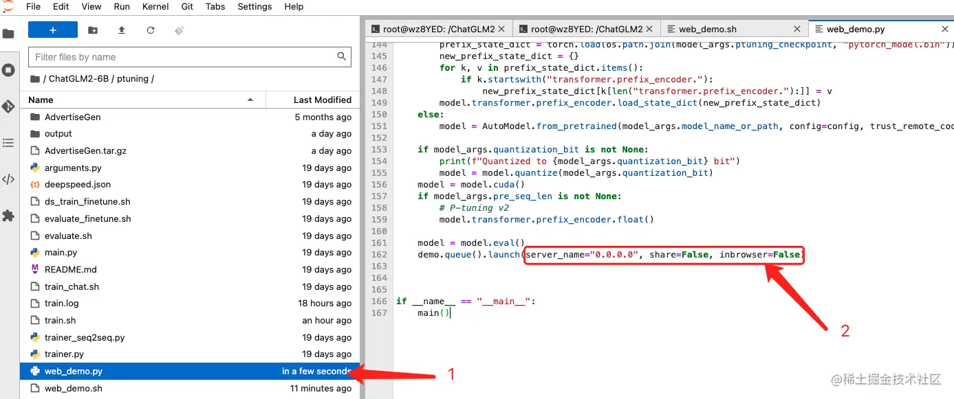 为了能公网正常访问,还需要改下web_demo.py,将该文件162行代码改为: