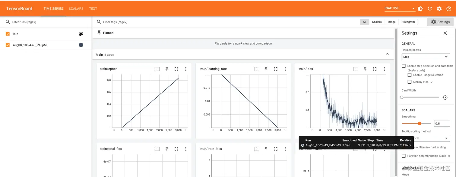 tensorboard 启动成功后,再访问租用页面 6006 端口链接即可查看 tensorboard 可视化结果了。