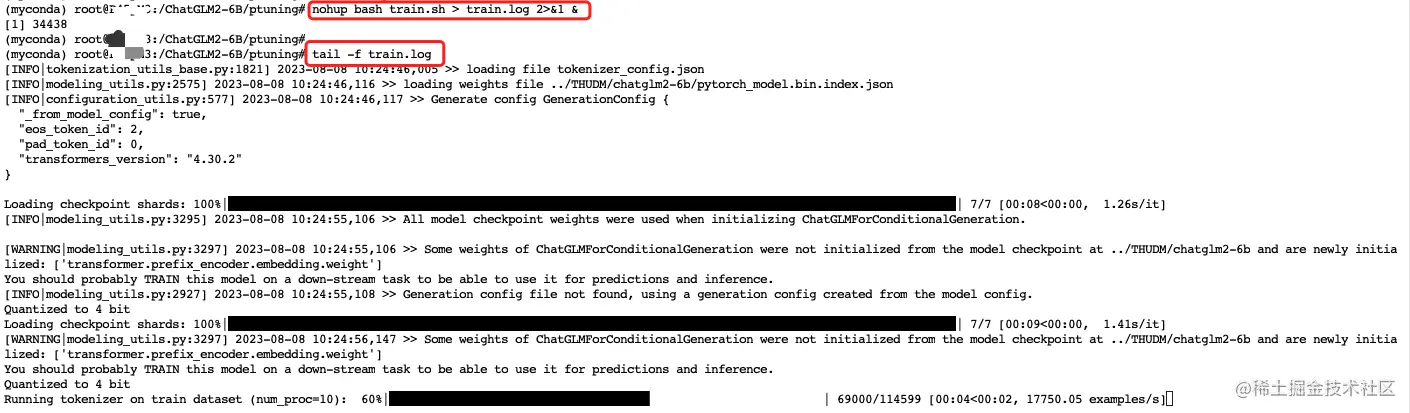 输入上面指令挂后台训练后,即使本地网络波动也不会影响程序运行,在 Terminal 里输入tail -f train.log即可看到程序运行日志,正常训练~