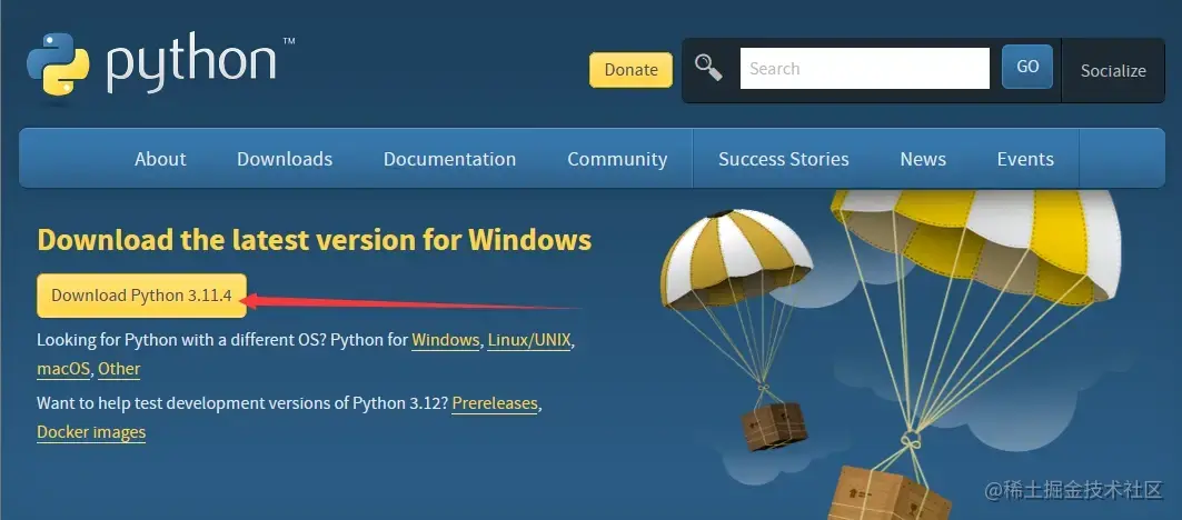 目前最新的python版本是python-3.11.4,直接在官网下载windows版本的安装程序。(想要折腾的可直接下载最新版,虽然我也不确定会不会有问题。如果想稳一手的,就下载python-3.8)。