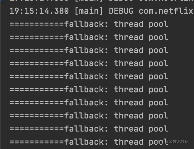 System.out.println("===========" + new HystrixThreadPool("thread pool").execute()); //上面消耗了所有线程,这边会执行到fallBack中