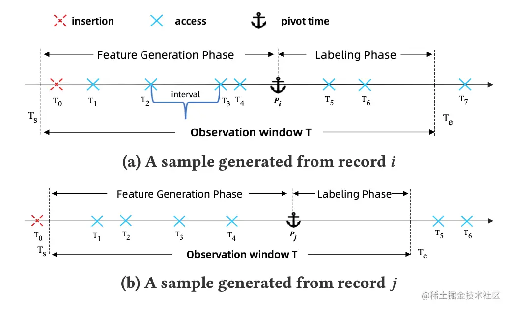 Label Generation 主要标记下一次访问和 pivot 的时间间隔。由于简单地把下一次访问的时间间隔作为标签会引入大量噪声,因此本文定义了 τ event 的 access time interval 作为真正的数据标签。τ event 设置了一个阈值 τ,排除了 access time interval 小于该阈值的访问。