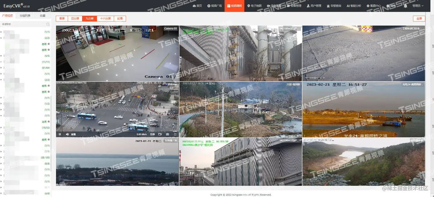视频存储磁盘阵列安防监控平台EasyCVR能在复杂的网络环境中,将海量设备实现集中统一接入与汇聚管理,实现视频的处理与分发、录像与存储、按需调阅、平台级联等。视频监控业务平台EasyCVR丰富的视频能力可应用在多样化的场景上,包括城市“一网统管”建设、智慧高速公路、智慧工地风险预警、智慧工厂安全生产可视化监管、校园视频大数据综合管理等。感兴趣的用户可以前往演示平台进行体验或部署测试。