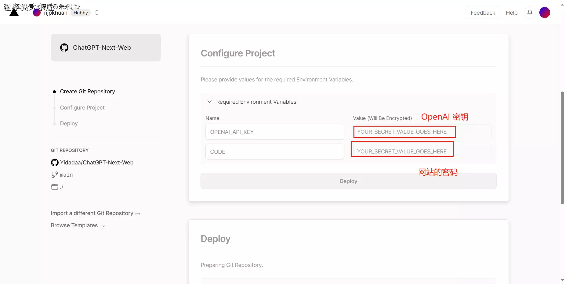 打开链接: vercel.com/new/clone?r…
