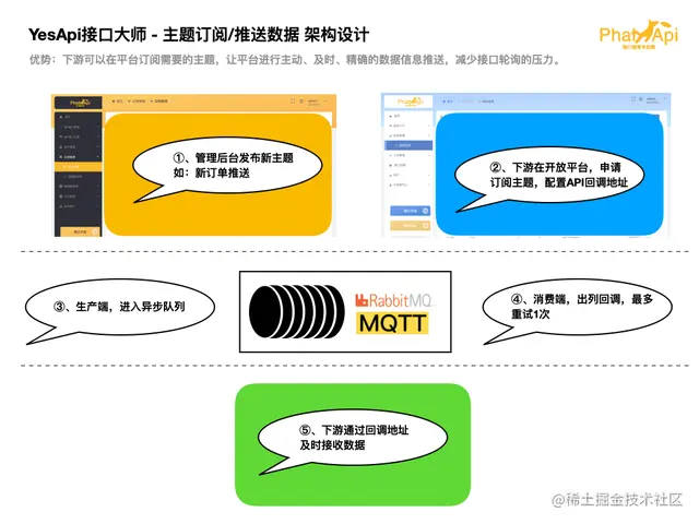通过异步队列的主题订阅,好处和优势在于:下游可以在平台订阅需要的主题,让平台进行主动、及时、精确的数据信息推送,减少接口轮询的压力。 例如:应用在ERP系统向下游多个系统推送刚刚新增的订单数据。