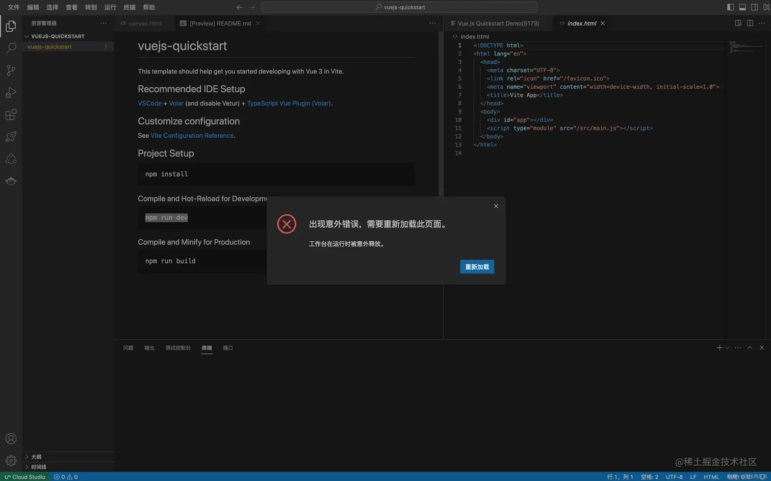 - 项目运行起来后,回到首页再次点击该项目,会重开运行环境。其实这时候可以提示用户,让用户来决定接下来如何操作。
