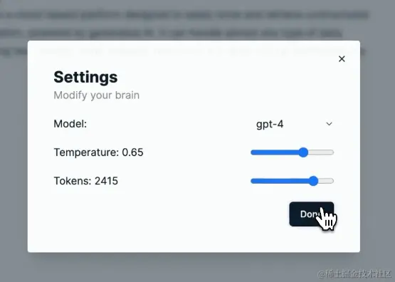 对于AI的配置还可以通过右下角的设置按钮做进一步微调,比如:采用更高级的GPT-4模型: