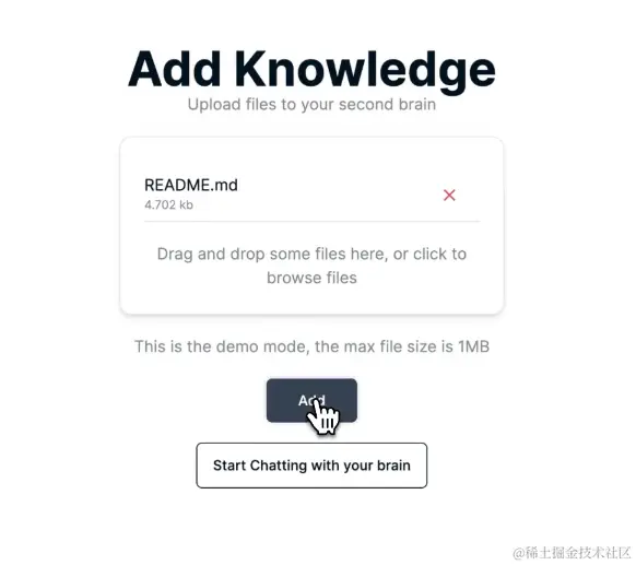 Quivr上手非常简单,可以直接通过官网网站登录之后,上传一个你要让AI学习的文件:
