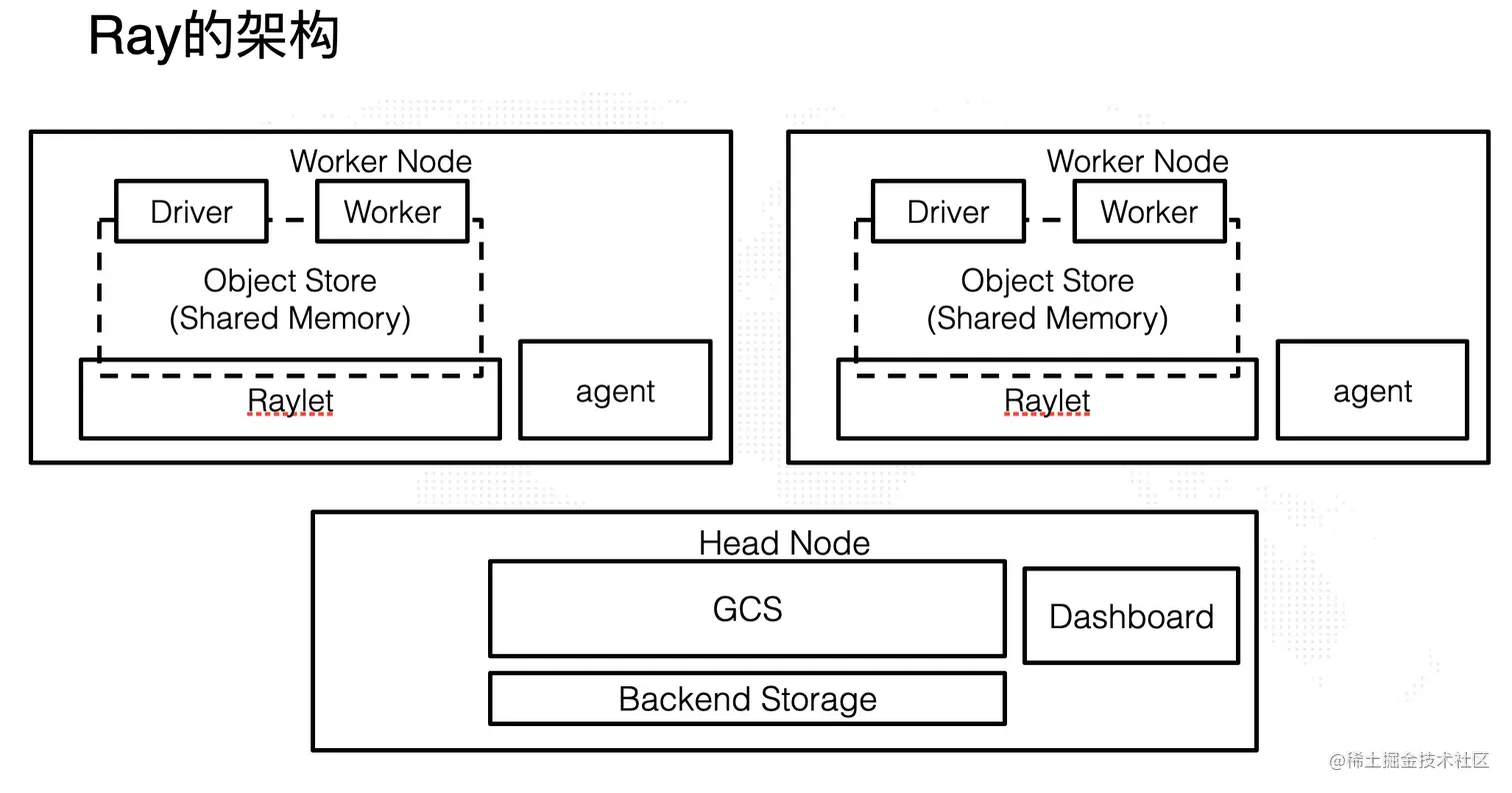 虽然实现了这么多强大的功能,Ray 的架构却是非常的简洁高效: