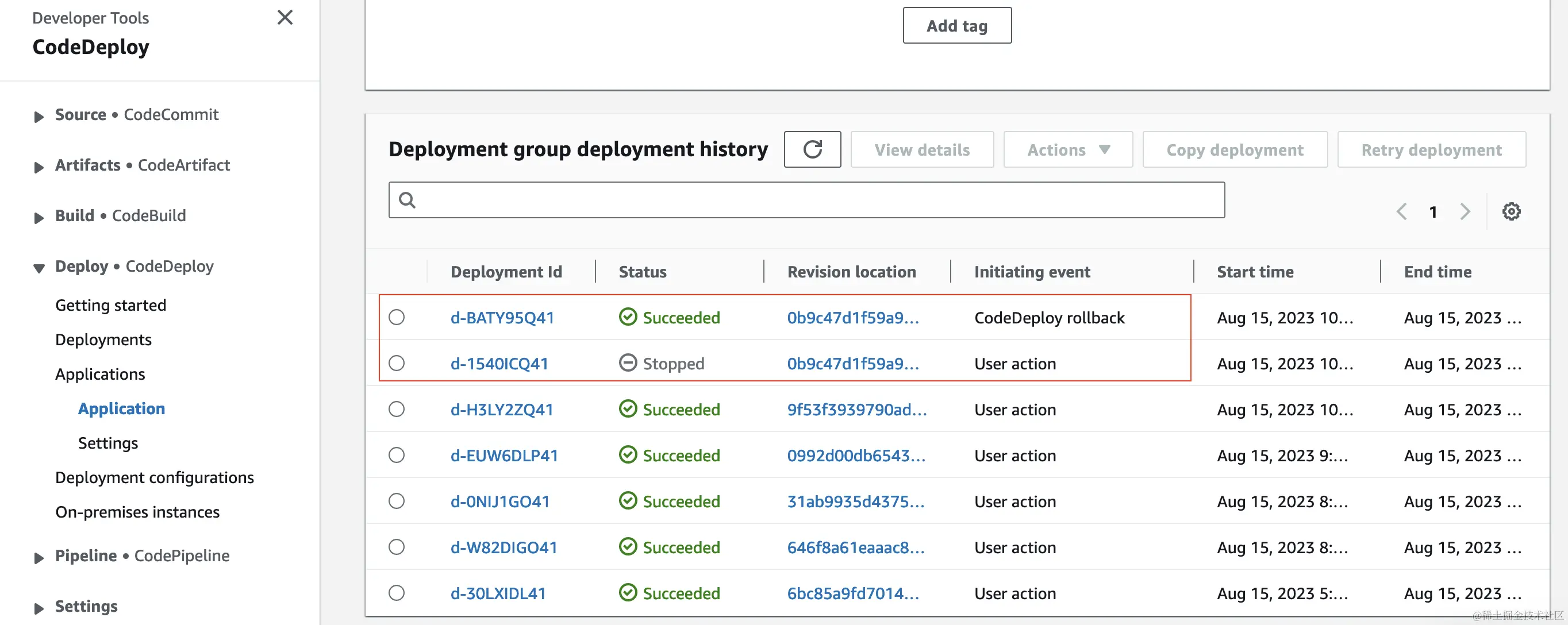 codedeploy自动终止了滚定,立即回滚到旧版本么,避免了有bug的新版本上线导致的线上故障。