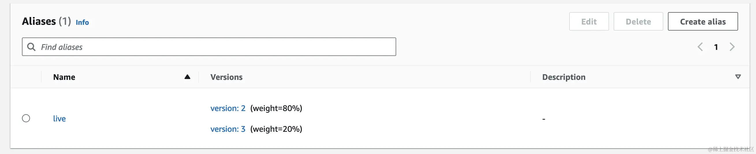 AWS Lambda只带完善的金丝雀发布功能,相比普通发布(后续的流量直接100%转移到新版本lambda上),金丝雀发布可以让后续的流量以一定的规则按比例的在新旧lambda间分布,这样除了可以让新版本的lambda预热外,还可以在新lambda出现bug的罕见情况下减少故障的影响范围并及时回滚到旧版本。