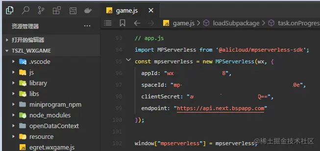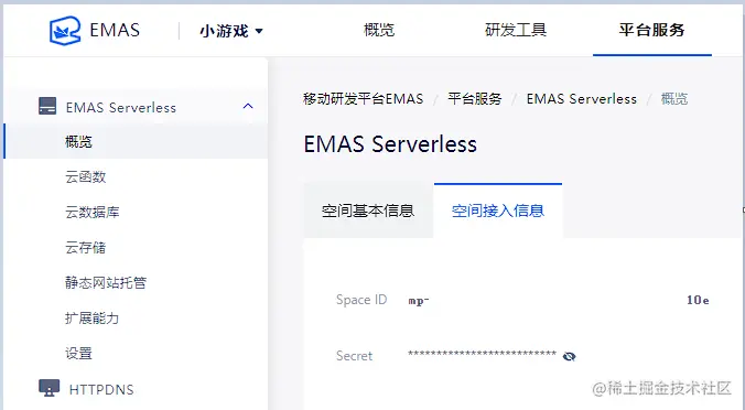 3.在EMAS后台添加小游戏的AppID和App Secret。