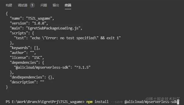 在终端中输入"npm install --save @alicloud/mpserverless-sdk":