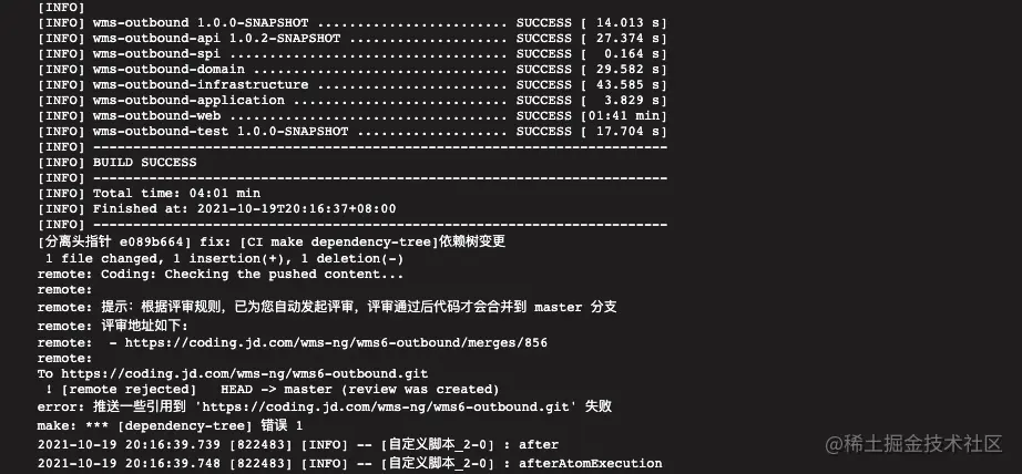 运行完毕可以看到日志success,push发起评审即可