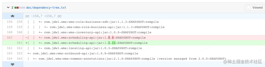 —— 我们将依赖树作为文件进行git版本控制,同时维护到CI上自动管控jar依赖关系的变更,这样可以即时发现依赖关系的变动。流水线定时每日触发扫描依赖树,保证每日最新,发现有变动即时发起doc变更,当研发关注到mr后,可以查看前一日是who改动了what,有效管理jar包。