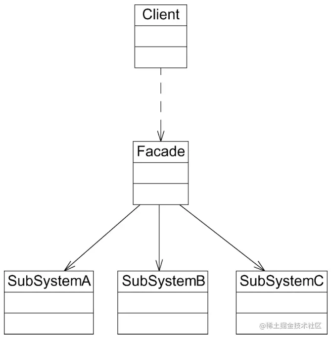 下图是一个典型的外观模式的结构图
