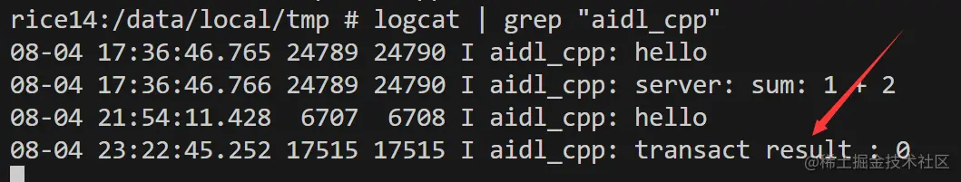 logcat | grep "aidl_cpp"