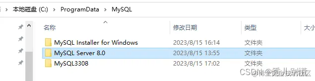 将C:\ProgramData\MySQL目录下的MySQL Server 8.0复制改名为MySQL3308,然后将my.ini中的端口和MySQL Server 8.0改成3308和MySQL3308。