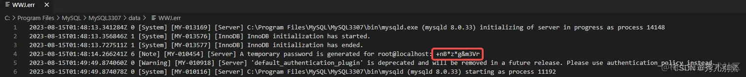 初始化完成之后MySQL3307目录下就会生成一个data文件,找到.err文件打开