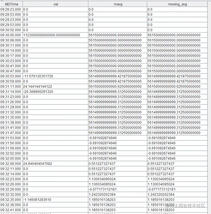 为了避免这种计算误差,我们先将中间计算结果转换为 DECIMAL128 类型,再计算 mavg 和 moving(avg,…):