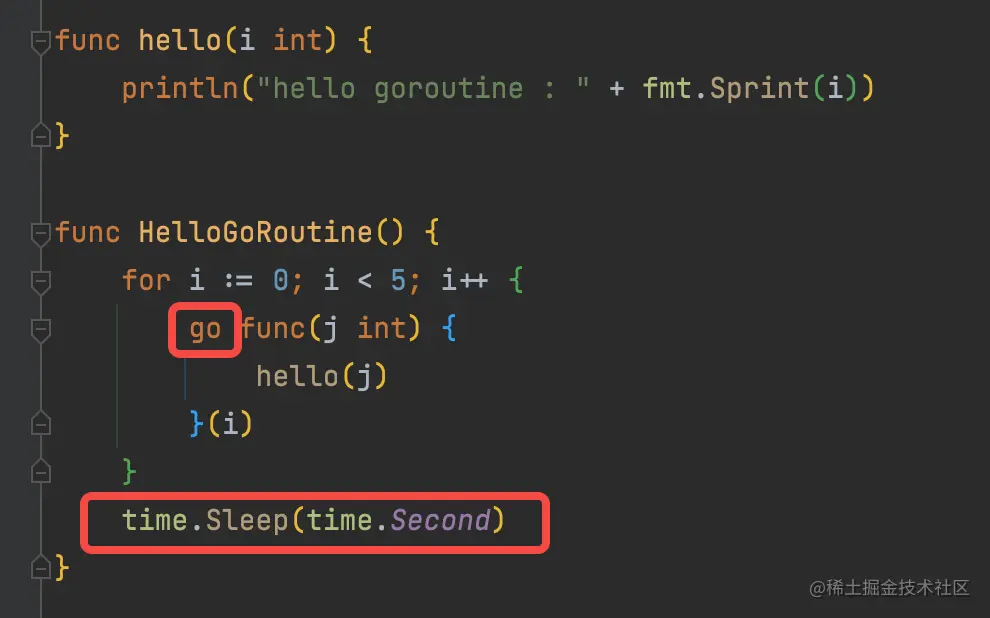time.Sleep(time.Second)主要是为了保证在子协程完成之前,主线程退出。