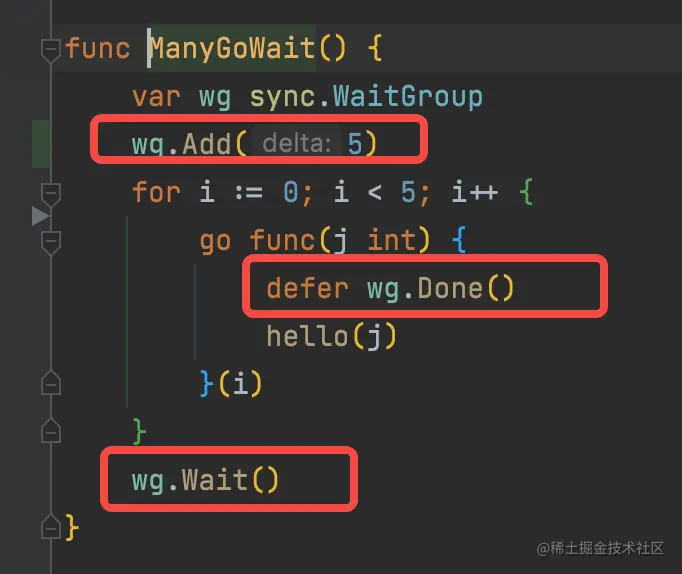 让我们回到最初多个协程打印hello gorouting的例子,现在我们用watigroup实现协程的同步阻塞。