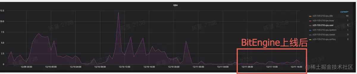 BitEngine上线后CPU负载对比