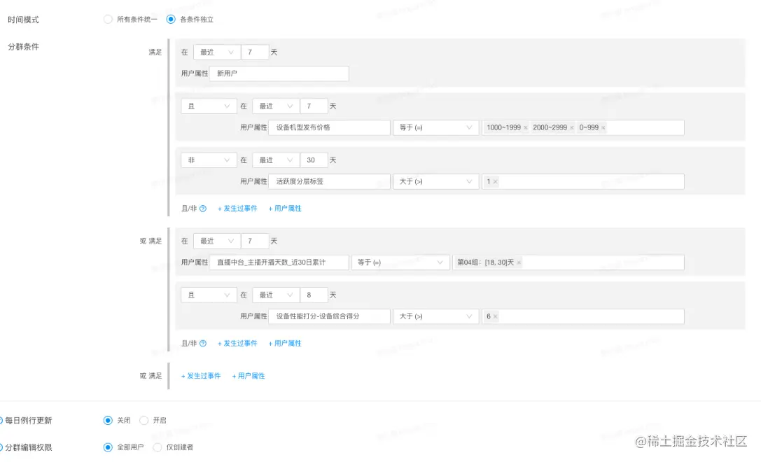 - 人群包按照一定的规则划分为多个区间,任意两个区间之间的人群包没有交集