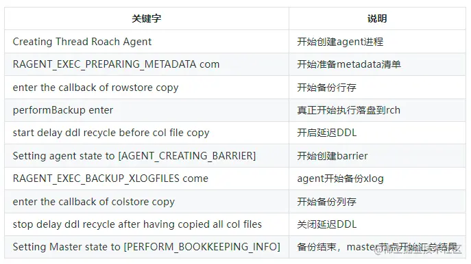 查看备份进度:grep “Setting agent state to” roach_agent*.log