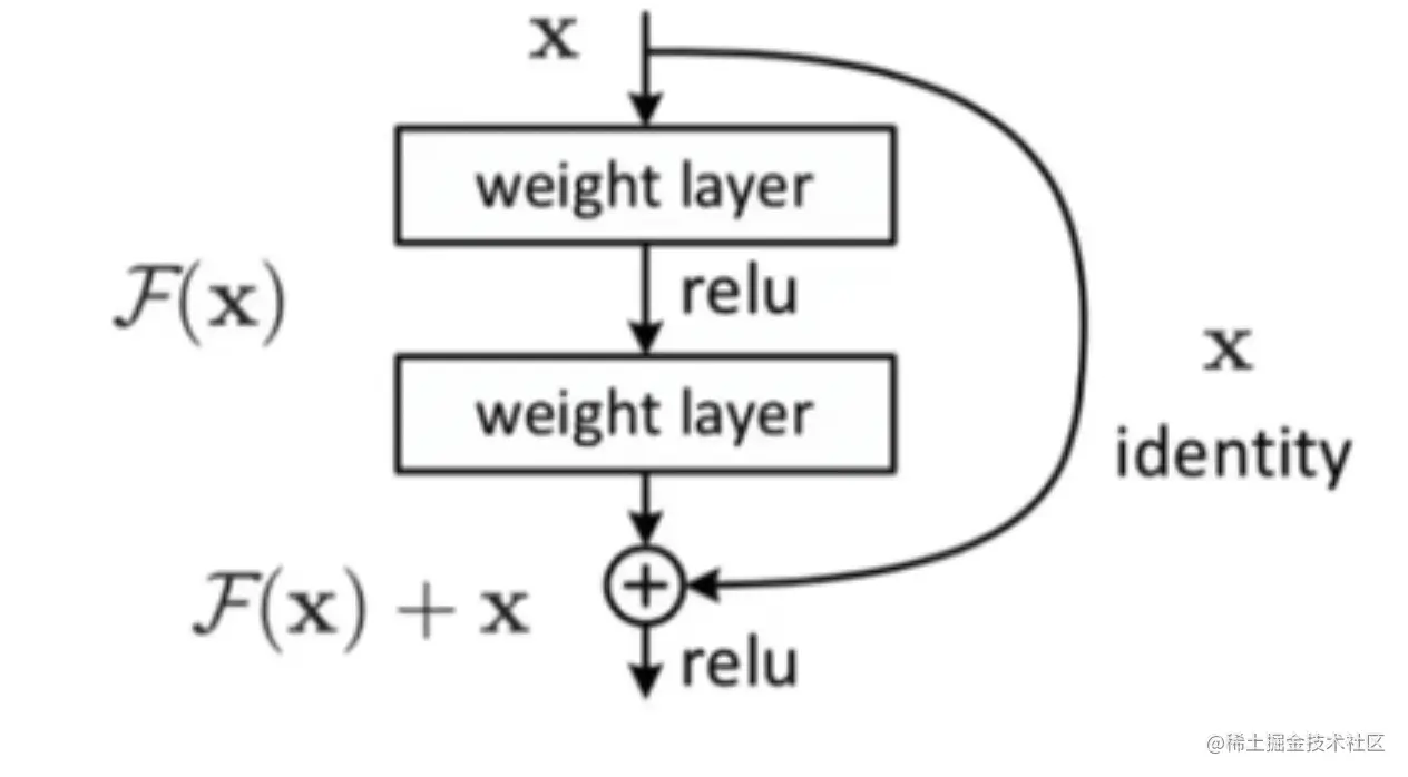 - 最终输出为X+F(X)