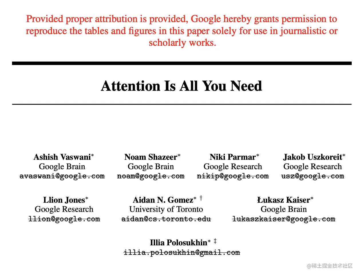 图2 论文Attention Is All You Need作者名单