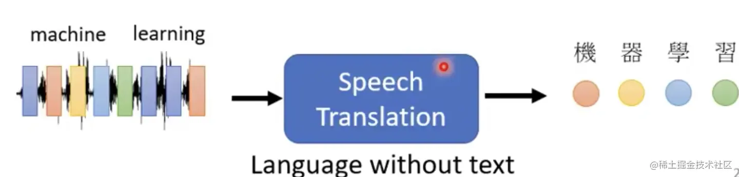 (这个任务也可以用语音识别+机器翻译结合来完成,但是有的语言没有文字,就很难办,但是Transformer模型直接从语音到文字翻译是可以胜任的)