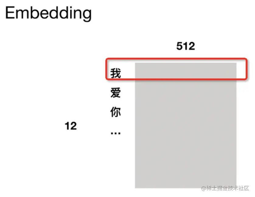 - 可以将文本通过一个低维向量来表达,不像 one-hot 那么长,比如图11中,把“我”编码为一个512维的向量;“你”也是一个512维的向量;“你”也是一个512维的向量。【论文中也是512维】