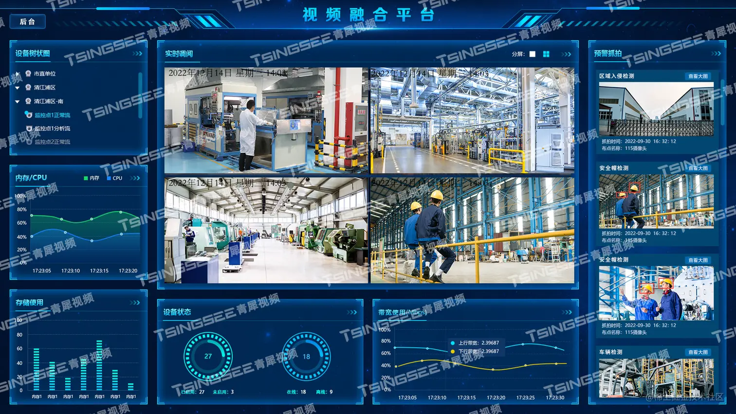 安防监控视频云存储平台EasyCVR既具备传统安防视频监控的能力,比如:视频汇聚管理、视频监控直播、云端录像、视频云存储、视频集中存储与管理、录像与回看、智能告警、平台级联、云台控制、语音对讲等,也具备接入AI智能分析的能力,比如人脸检测、人脸识别、区域入侵、车辆违停、机动车/非机动车识别、垃圾堆积识别、垃圾桶满溢识别等。
