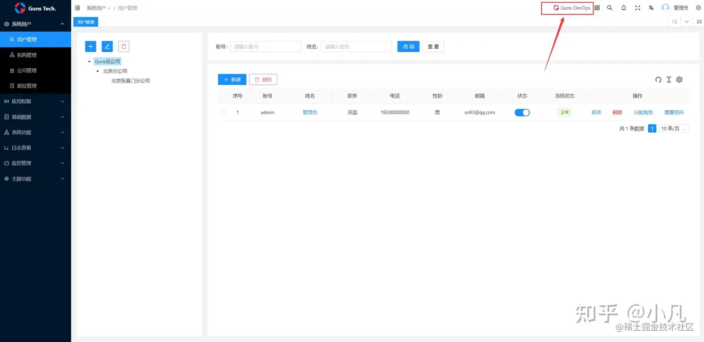 启动项目后,界面上点击右上角,即可跳转到Guns-DevOps平台
