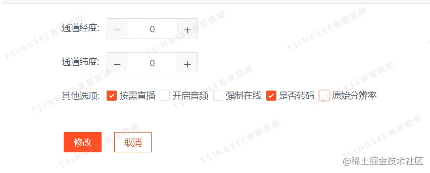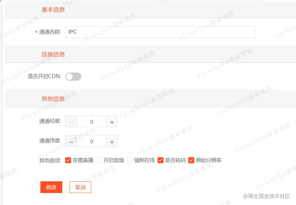 在通道编辑页面可以选择“是否转码”和“原始分辨率”设置。