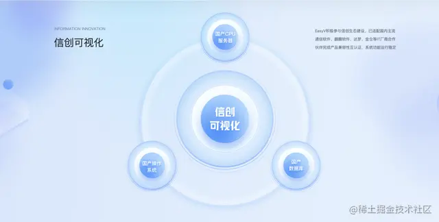 自易知微成立以来,积极参与信创生态建设,目前,EasyV低代码数字孪生平台已适配国内主流通信软件、麒麟软件、达梦、金仓等IT厂商合作伙伴完成产品兼容性互认证,系统功能运行稳定。