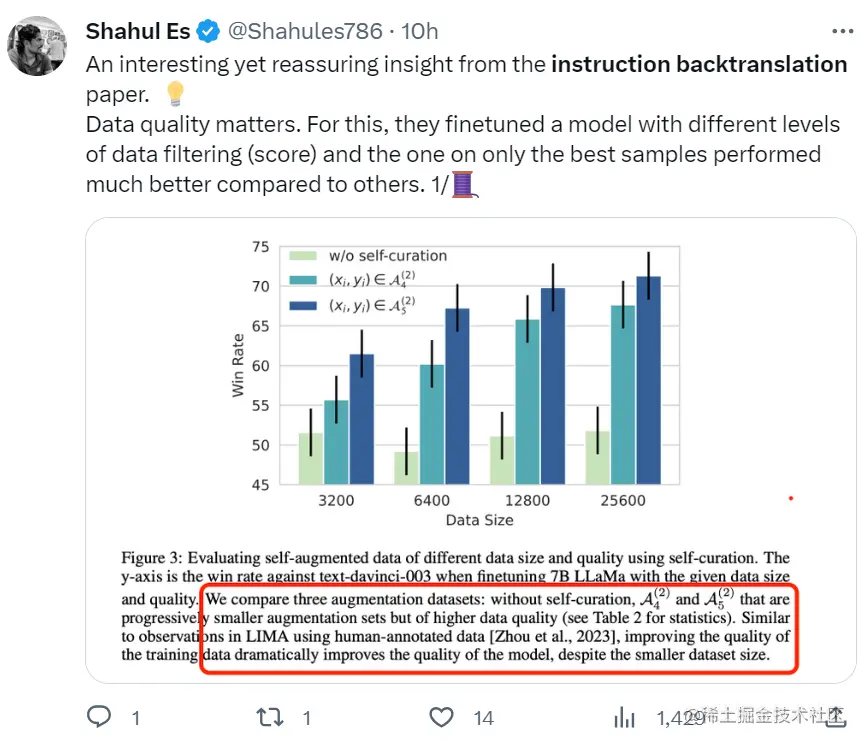 还有网友对这项研究进行了很好的概括:数据质量对大模型来说确实很重要,研究过程中,他们使用不同级别的过滤数据,微调了一个模型,结果表明,只有最好的样本才能得出比其他样本表现更好的模型。