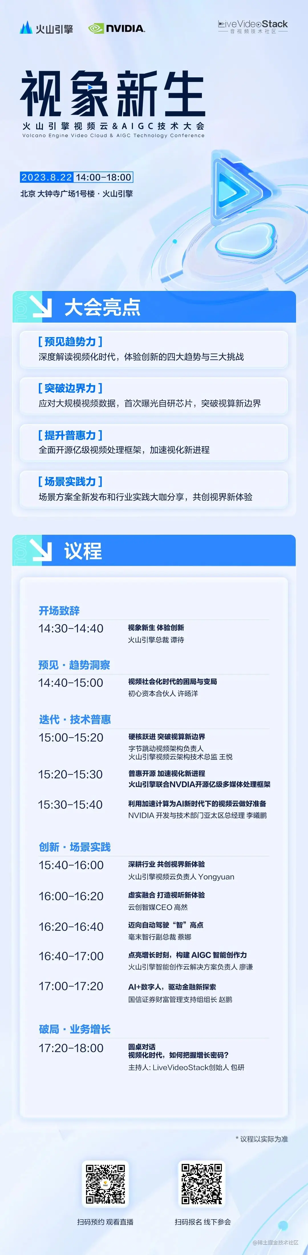 大会将进行线上直播,您可以关注LiveVideoStack视频号提前锁定精彩,也可以扫描下方海报二维码亲临现场,共同见证全新视频化时代的开启,共同探寻随之而来的亿万新机会!