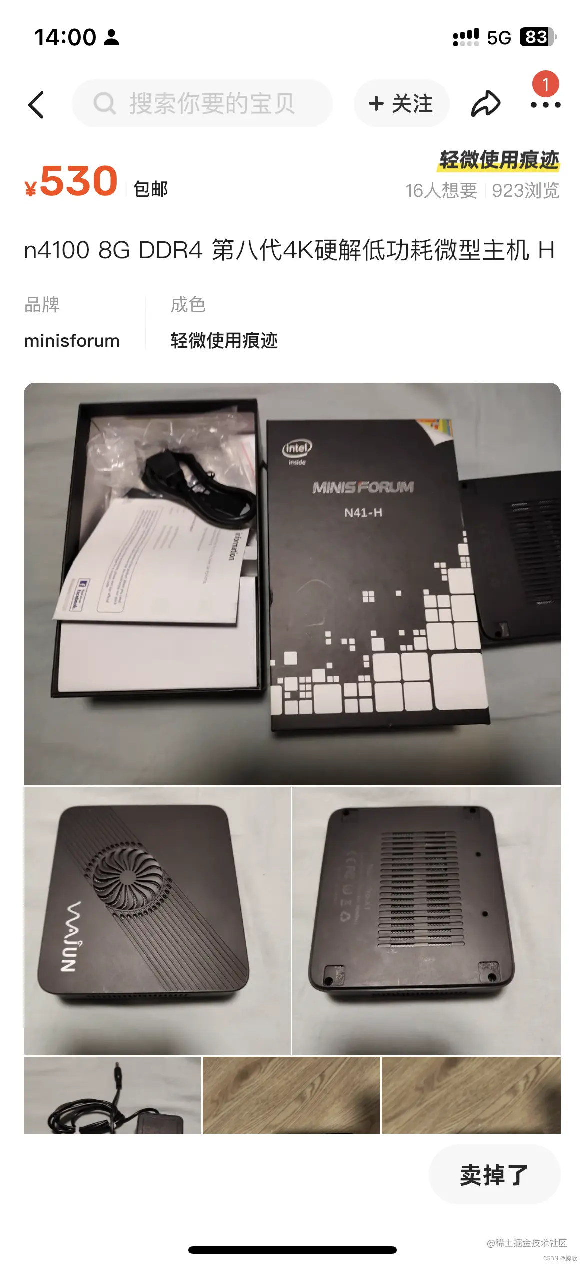 设备的话不用过度关注性能,毕竟私有云也没打算公开使用,像闲置的笔记本、迷你主机、闲置的机箱这些都可以作为服务器。不差钱的当然可以选择NAS,😶像我这种经济有限的可以选择在二手平台上淘一个二手的迷你主机再搭配一个外接硬盘作为服务器,如下图: