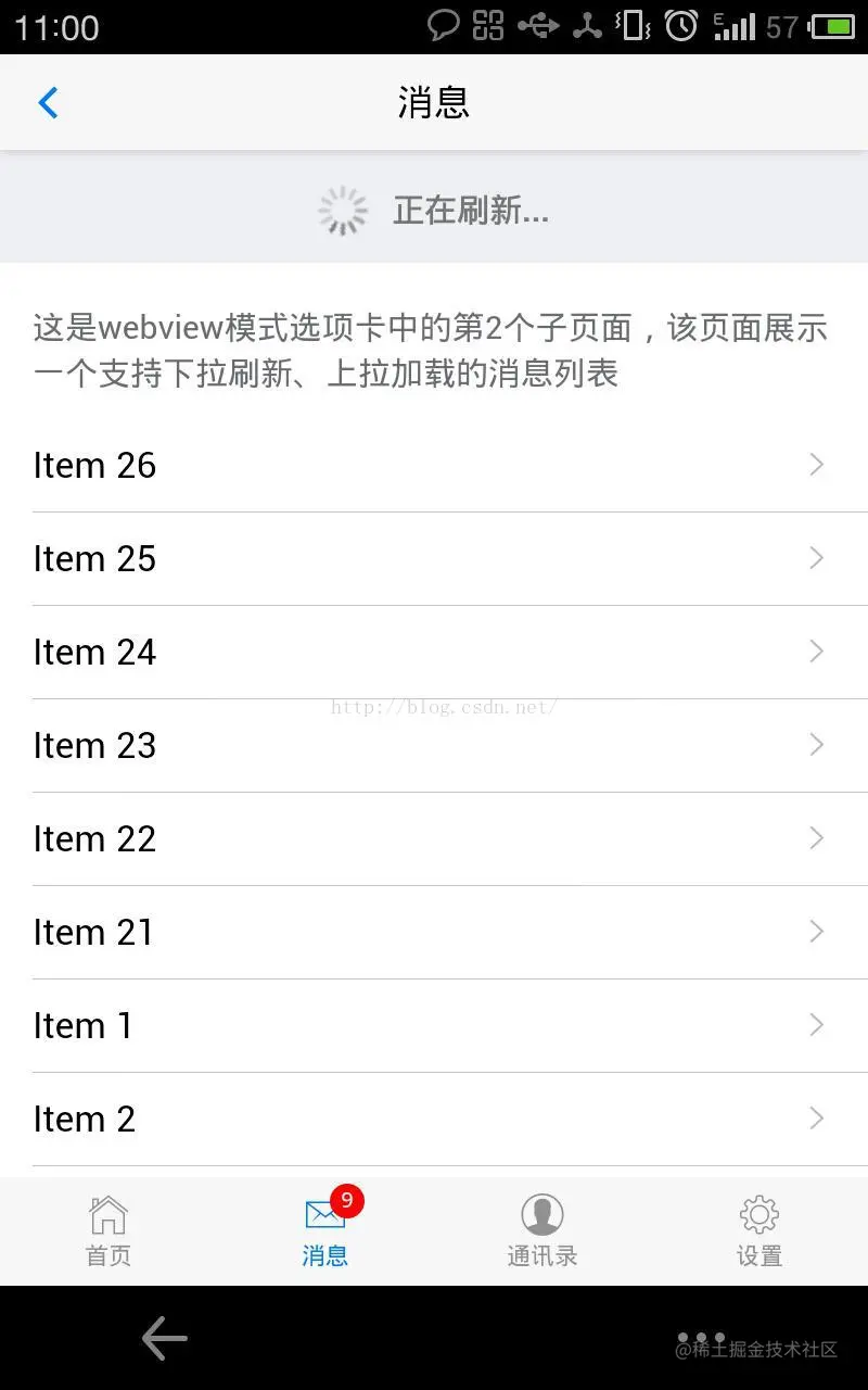 解决措施:使用webview模式选项卡。何谓webview模式?其实就是每个选项卡内容都是一个独立的webview,彼此之间互相独立、互不影响; 对于较为复杂的业务系统,推荐使用该模式。另外,基于webview模式的选项卡,支持原生加速的下拉刷新。如下图: