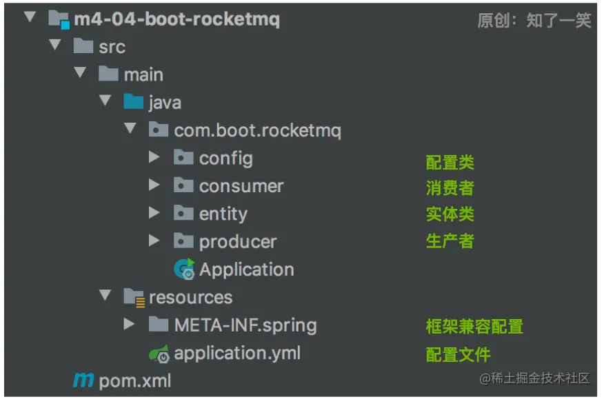 在配置类中主要定义两个Bean的加载,即RocketMQTemplate和DefaultMQProducer,主要是提供消息发送的能力,即生产消息;