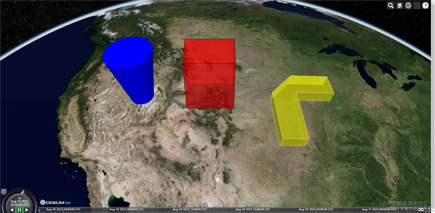 在Cesium上面绘制实体形状有两种方式:一个是通过Entity的方式来绘制,还有一种是通过CZML的JSON格式数据来绘制,下面就演示这两种方式。