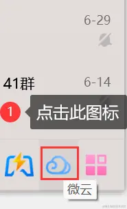 步骤1:在电脑端登录您的QQ,然后在QQ面板点击右下角的【微云】标志。
