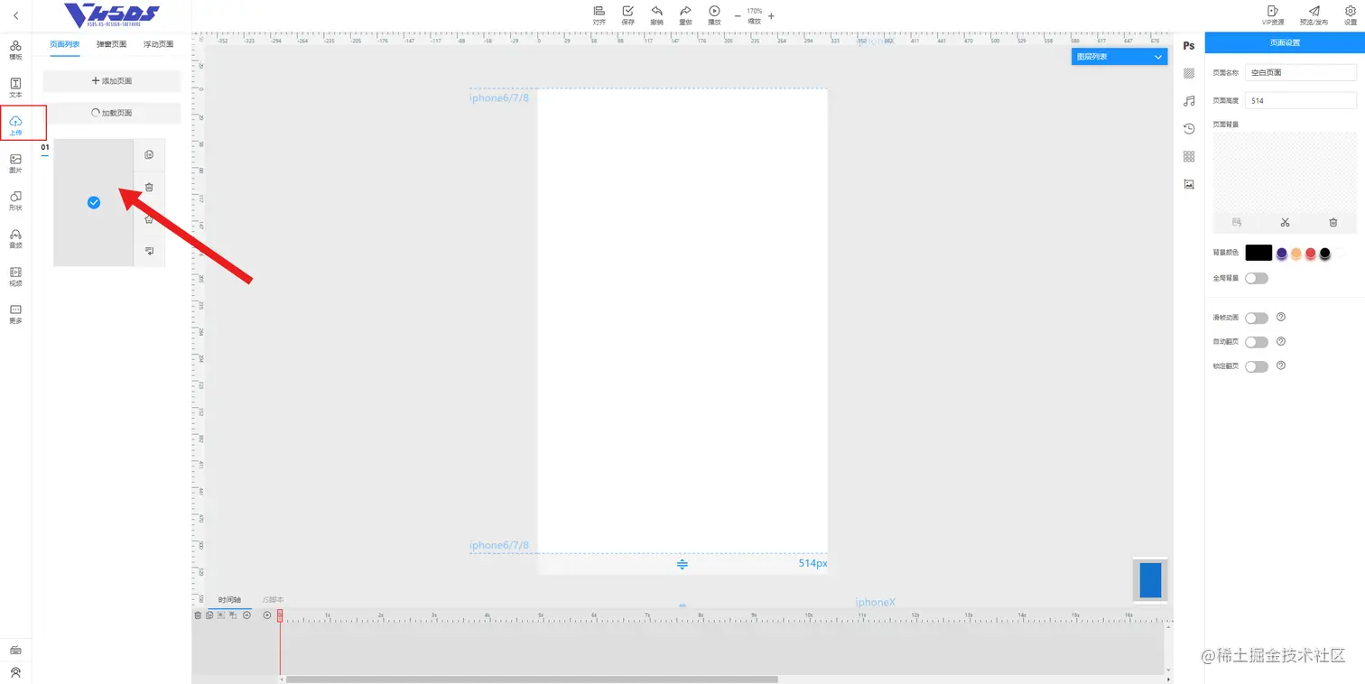 1.点击左边工具栏“上传”
