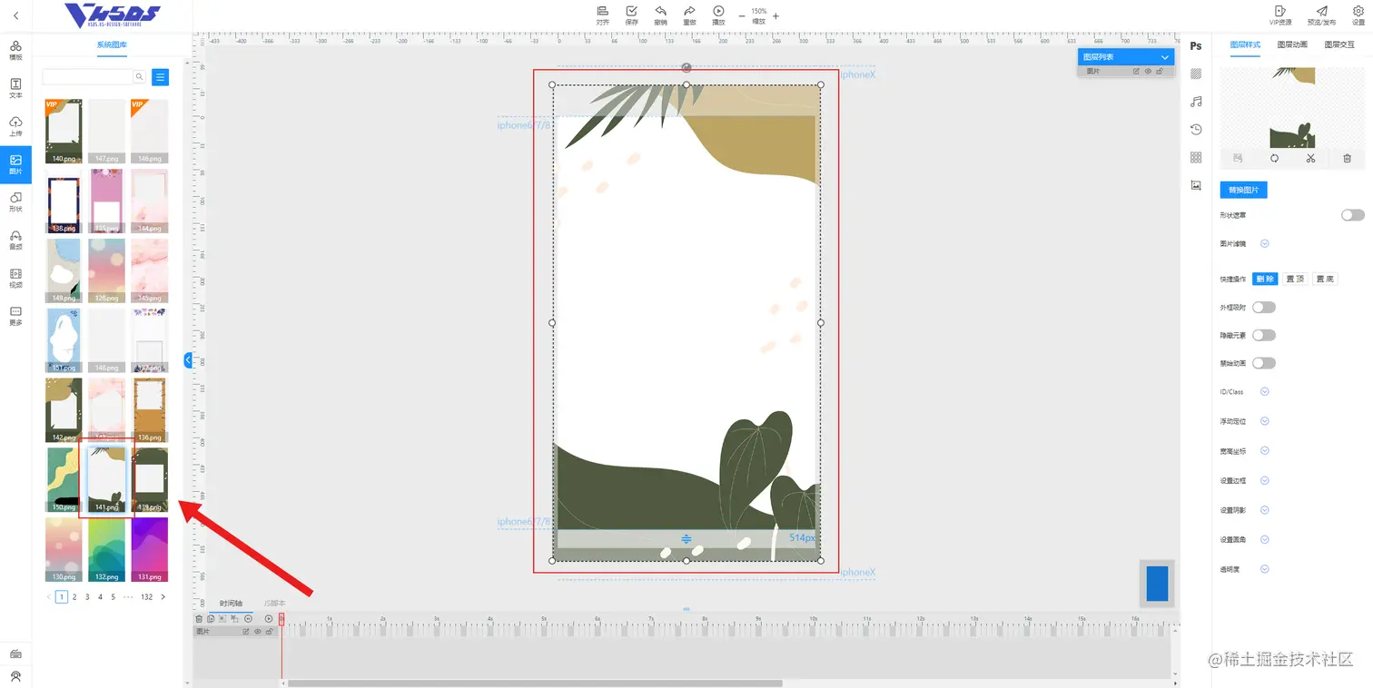 2.从弹出的系统图库中挑选需要的背景图或素材图