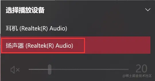 - 确保输出设备为 【扬声器】 ,并对主音量进行调整。