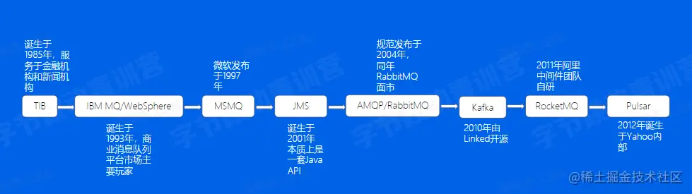 消息中间件其实诞生的很早,早在1983年互联网应用还是一片荒芜的年代,有个在美国的印度小哥Vivek就设想了一种通用软件总线,世界上第一个现代消息队列软件The Information Bus(TIB),他 TIB受到了企业的欢迎,这家公司的业务发展引起了当时最牛气的IT公司IBM的注意,于是他们一开始研发了自己消息队列软件,于是才有了后来的wesphere mq,再后来微软也加入了战团。