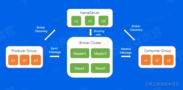 先说数据流也是通过Producer发送给Broker集群,再由Consumer进行消费 Broker节点有Master和Slave的概念 NameServer为集群提供轻量级服务发现和路由。